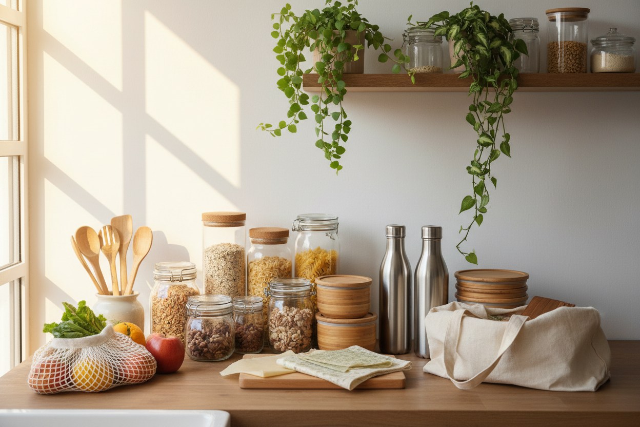 create image follow concept: Turn everyday habits into positive actions for the planet. The Zero-Waste Lifestyle collection features thoughtfully designed products that reduce waste, offer long-lasting durability, and replace single-use plastics.Choose natural, safer, and more eco-friendly options for you and the Earth.